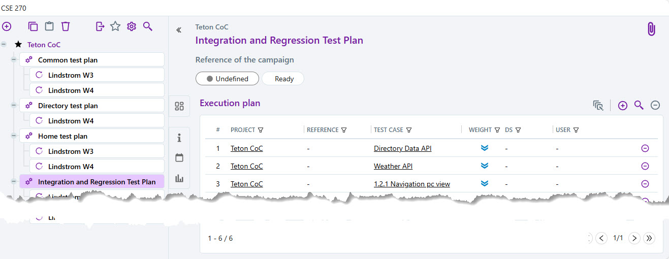 - Expand the Campaigns list and select the Integration and Regression test plan.