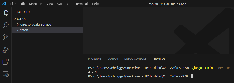 Now, open the cse270 folder you downloaded from the main instructions in VS Code. Your VS Code will look like this, but with the correct website version folder: