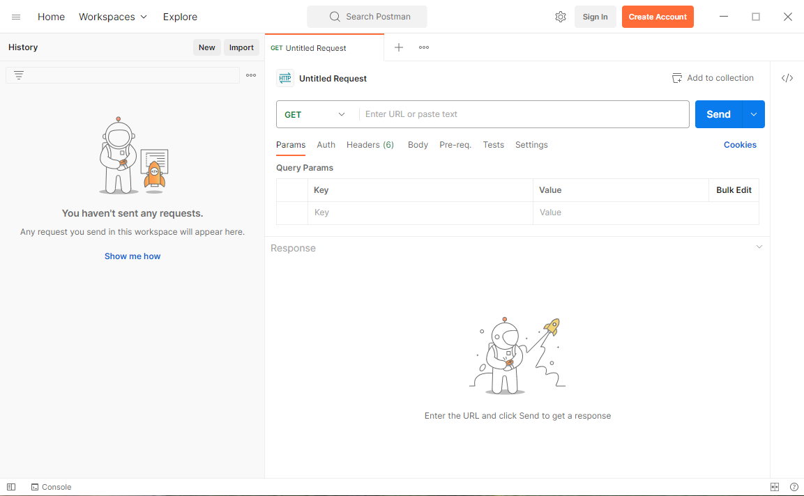 Follow the prompts for installing the tool on your system. When Postman first starts, you may be asked to create an account. Although creating an account is not necessary for this test, it will be necessary in future tests, so go ahead and create an account now.