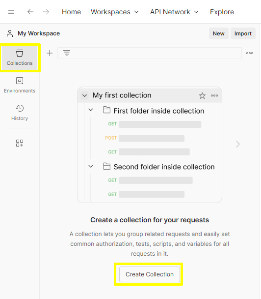 Click on the Collections icon in the left hand navigation, and choose Create Collection. This creates a