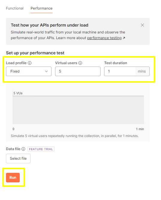 Postman Collections Screen Run - In the Runner tab, click the Performance link as shown.