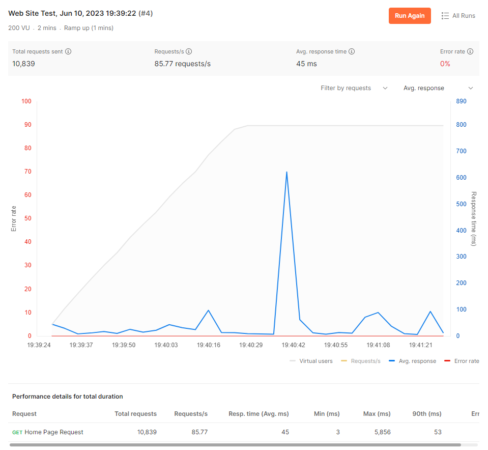 Stress test settings - Run your test, and observe your results. You should get a graph similar to one below.